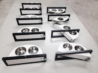 Karmniki i poidła dla zwierząt, obrotowe miski, szuflady i kuwety do utrzymania czystości w klatkach hodowlanych. Zawieszki na żerdki dla ptaków do klatek i wolier.